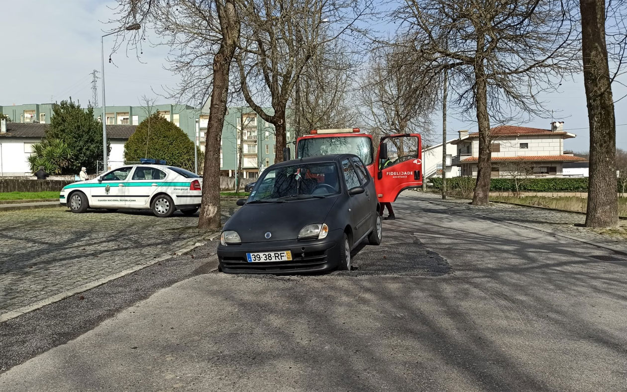 Piso volta a ceder junto à feira e provoca danos numa viatura
